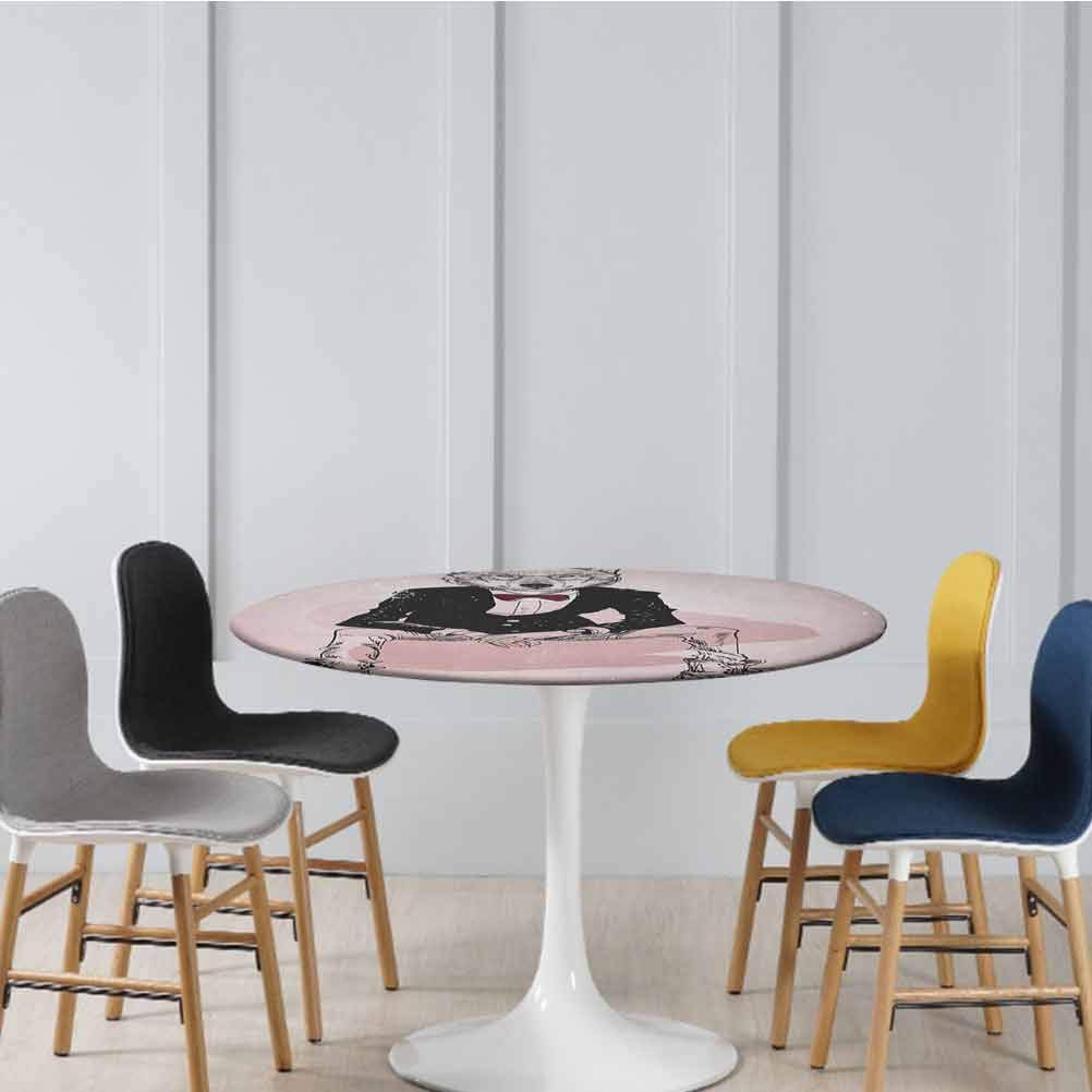 Title : Round Tablecloth Indie Spillproof Fabric Tablecloth Hipster Portrait of Sitting Wild Wolf with Glasses Smart Casual Outfit Decorative for Holiday Home Baby Pink Black Burgundy Diameter 54"