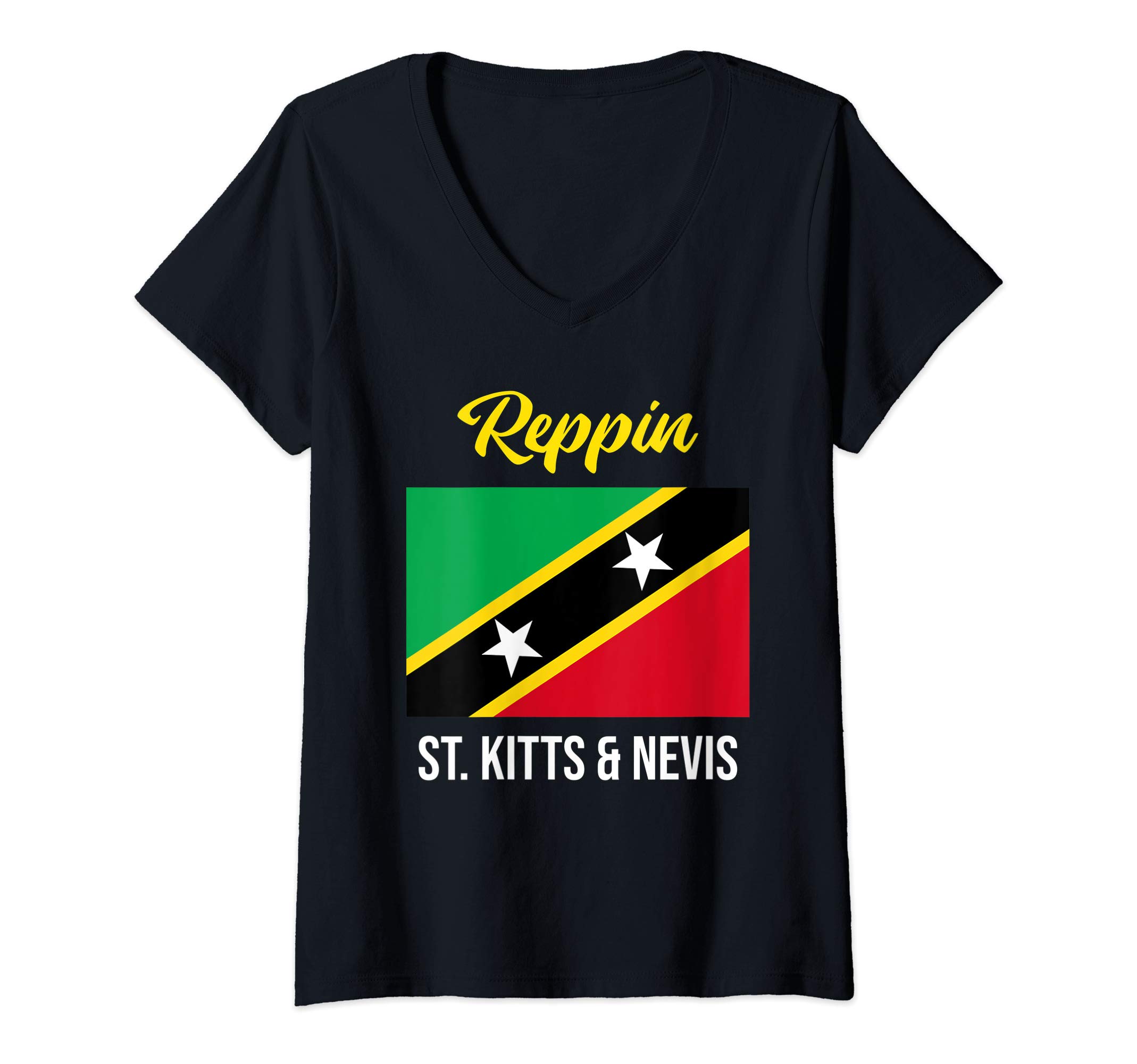 Real Title : Womens St. Kitts & Nevis Flag Reppin West Indies Vacation V-Neck T-Shirt