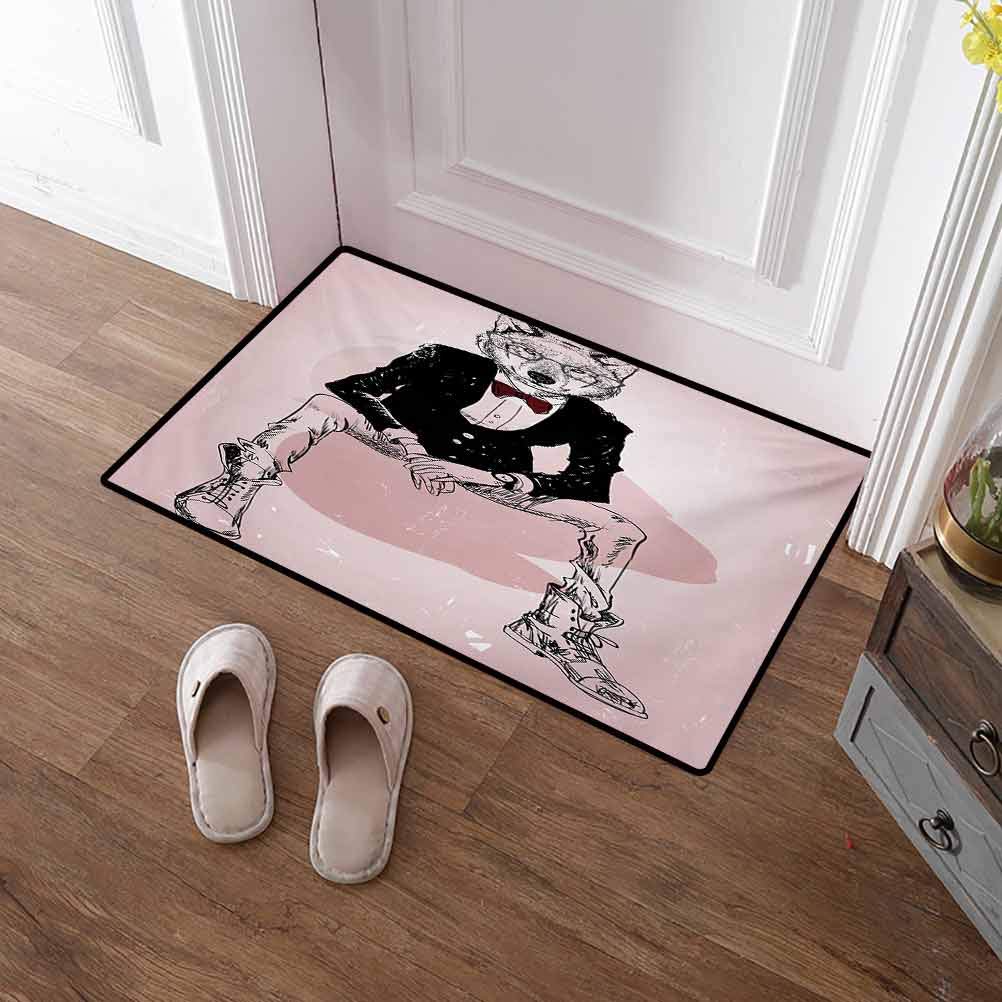 Title : HouseLook Welcome Mats Indie Nursery Rug Playmat Outdoor Rugs Hipster Portrait of Sitting Wild Wolf with Glasses Smart Casual Outfit Carpets for Nursery Baby Rooms Baby Pink Black Burgundy 24x48 Inch
