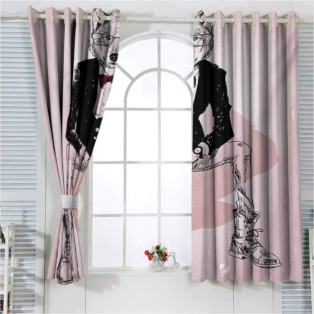 Buy Indie Window Blackout Hipster Portrait of Sitting Wild Wolf with Glasses Smart Casual Outfit Room Divider Curtain&Wide 52 x 72 Inch