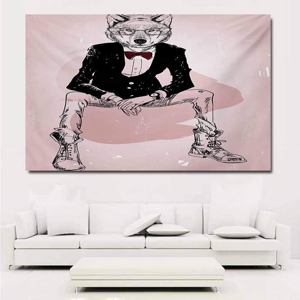 Real Title : ParadiseDecor Indie Wall Decor Hipster Portrait of Sitting Wild Wolf with Glasses Smart Casual Outfit Wall Decals for Bedroom 24x16 Inch