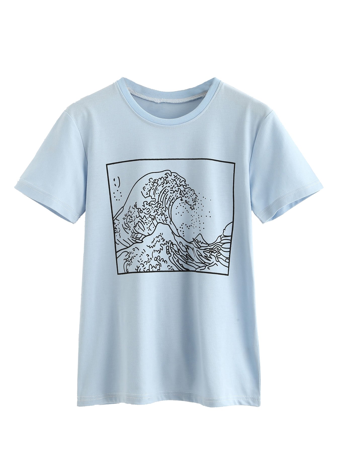 Buy Romwe Women's Short Sleeve Top Casual The Great Wave Off Kanagawa Graphic Print Tee Shirt Right Here and Right Now just for $18.99 Because before price is changed at anytime without notice or this item will sold out. who is know?