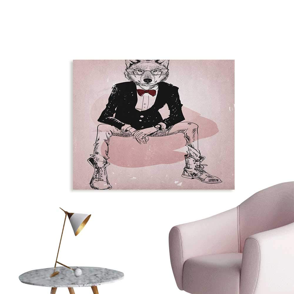 Buy Unprecall Indie Photo Wall Paper Hipster Portrait of Sitting Wild Wolf with Glasses Smart Casual Outfit Cool Poster Baby Pink Black Burgundy W48 xL32 Right Here and Right Now just for $46.40 Because before price is changed at anytime without notice or this item will sold out. who is know?