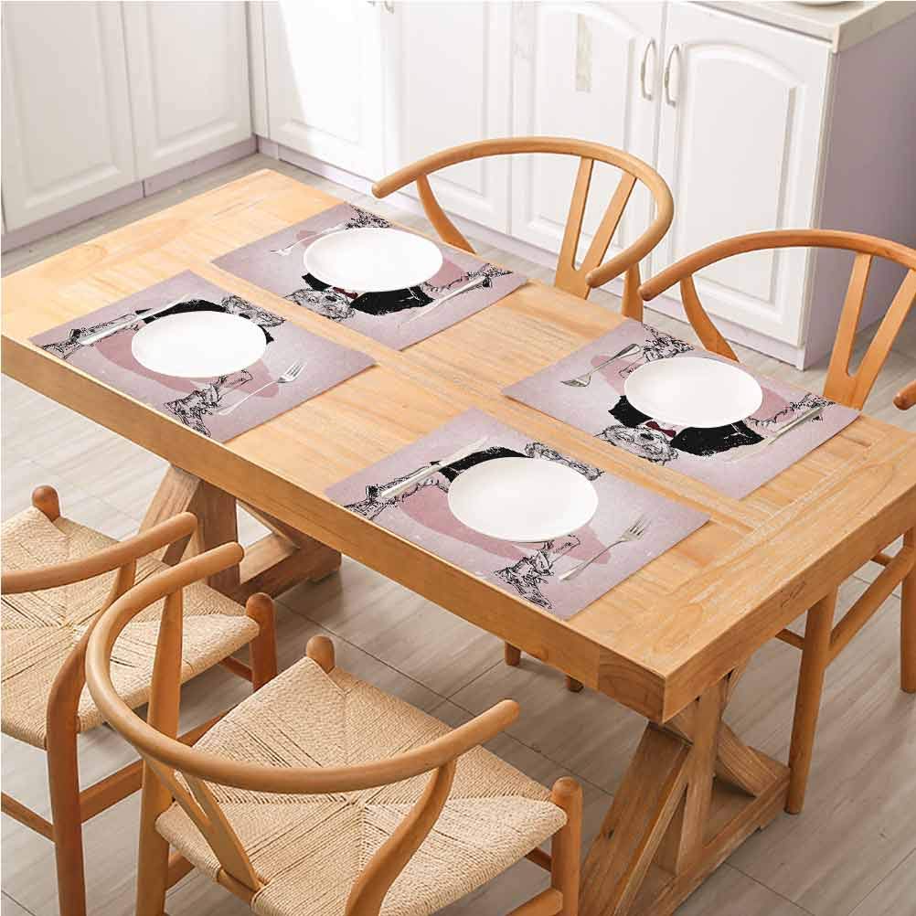 Real Title : For Tables Heat-Insulation Linen Kitchen Dining Pad, Indie Hipster Portrait of Sitting Wild Wolf with Glasses Smart Casual Outfit Baby, Great For Everyday Use Inside Or Outside, Set Of 6