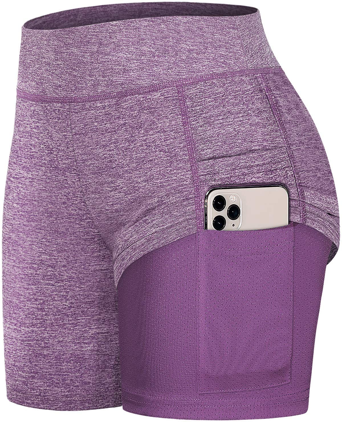 Real Title : Women's High Waist 2 in 1 Yoga Athletic Running Shorts with Pockets