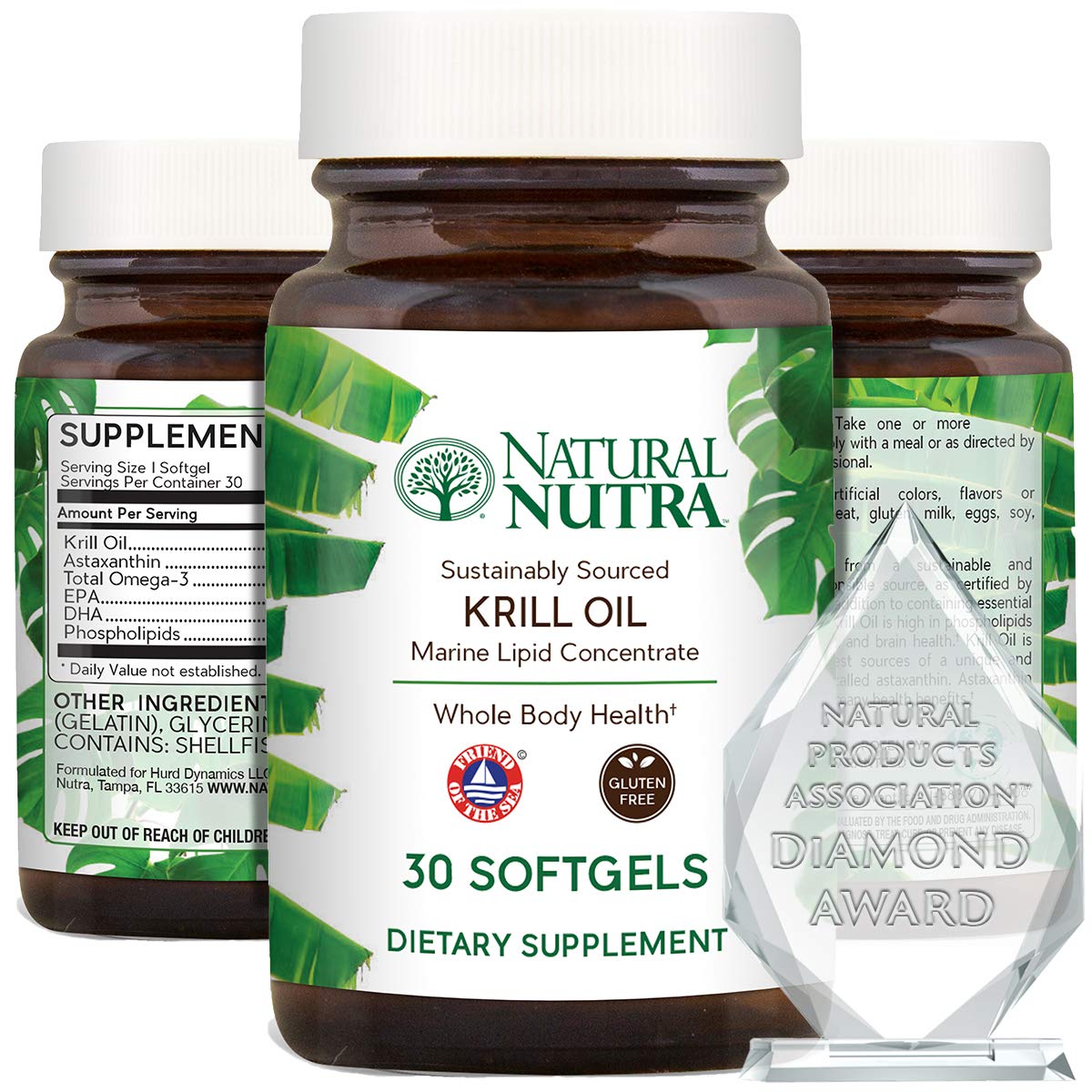 Buy Natural Nutra Krill Oil 500mg with Astaxanthin, Omega 3 Fatty Acids, EPA and DHA, Antarctic Sourced and Friend of The Sea Certified, Environmentally Friendly Premium Glass Bottles, 30 Capsules