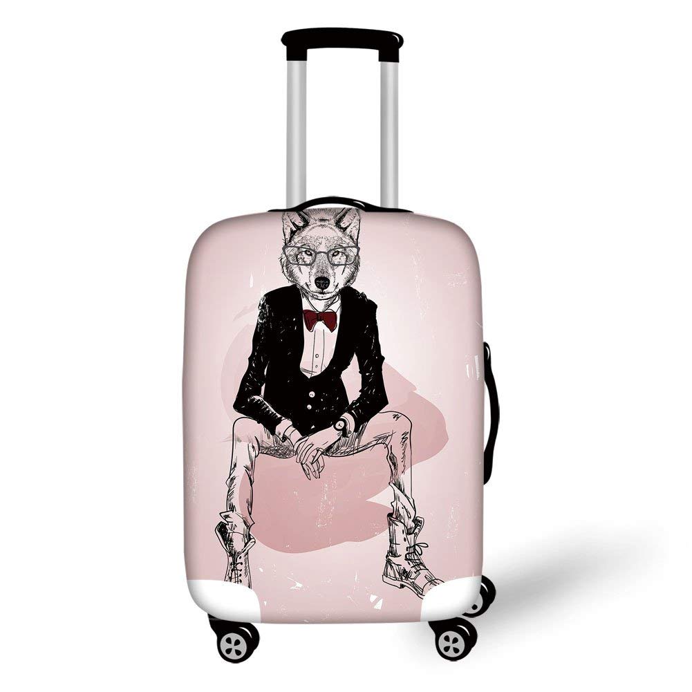 Addition Information of Travel Luggage Cover Suitcase Protector,Indie,Hipster Portrait of Sitting Wild Wolf with Glasses Smart Casual Outfit,Baby Pink Black Burgundy,for TravelL 25.9x37.8Inch