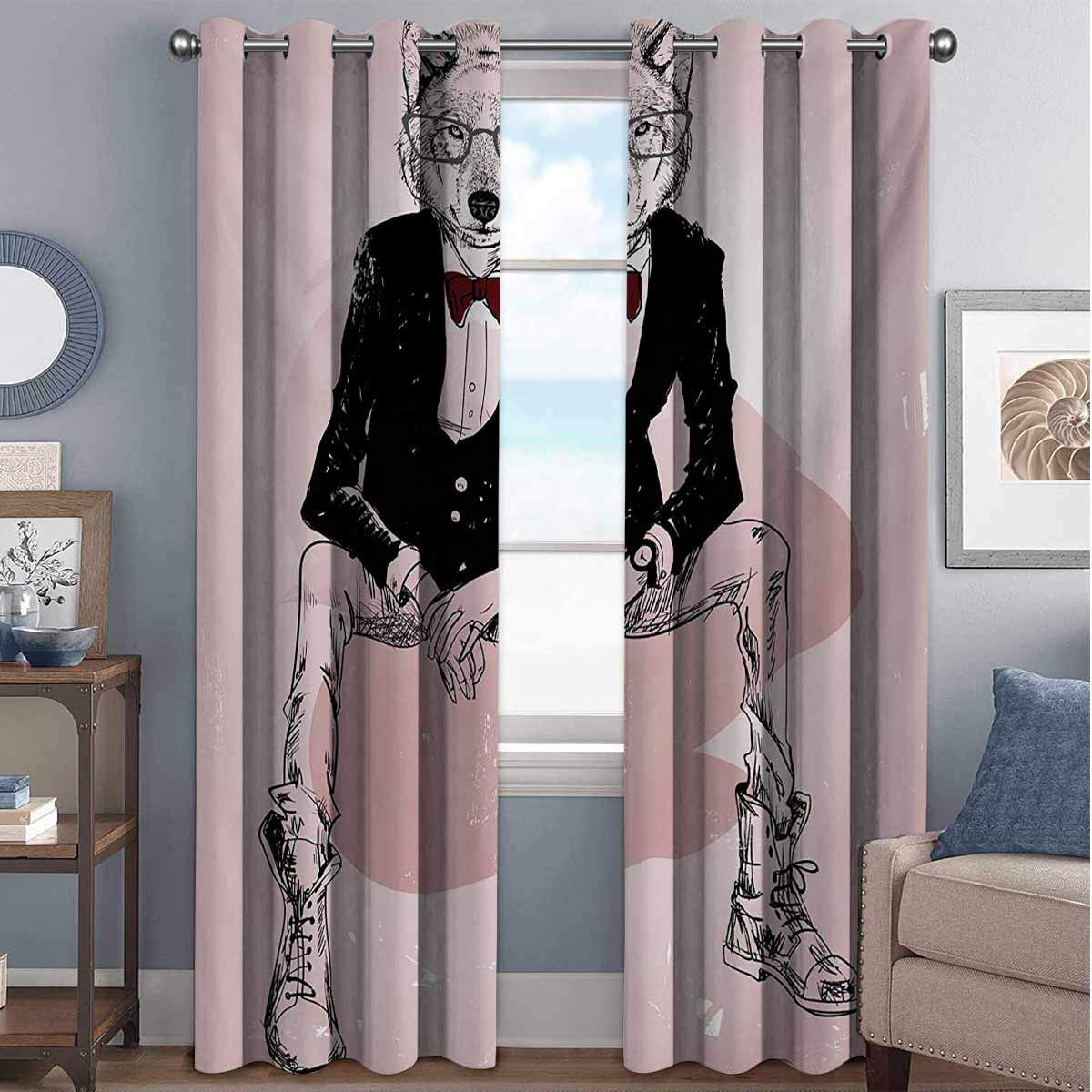 Title : Annery Indie Shading Insulated Curtain Hipster Portrait of Sitting Wild Wolf with Glasses Smart Casual Outfit for Living Room or Bedroom W42 x L63 Inch Baby Pink Black Burgundy