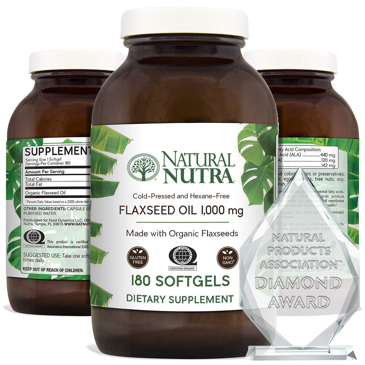 Buy Natural Nutra Organic Flaxseed Oil Softgels, Plant Based Omega 3 6 9, Fatty Acids Supplement (ALA, LA and Oleic Acid), Cold Pressed, 1000 mg, 180 Capsules