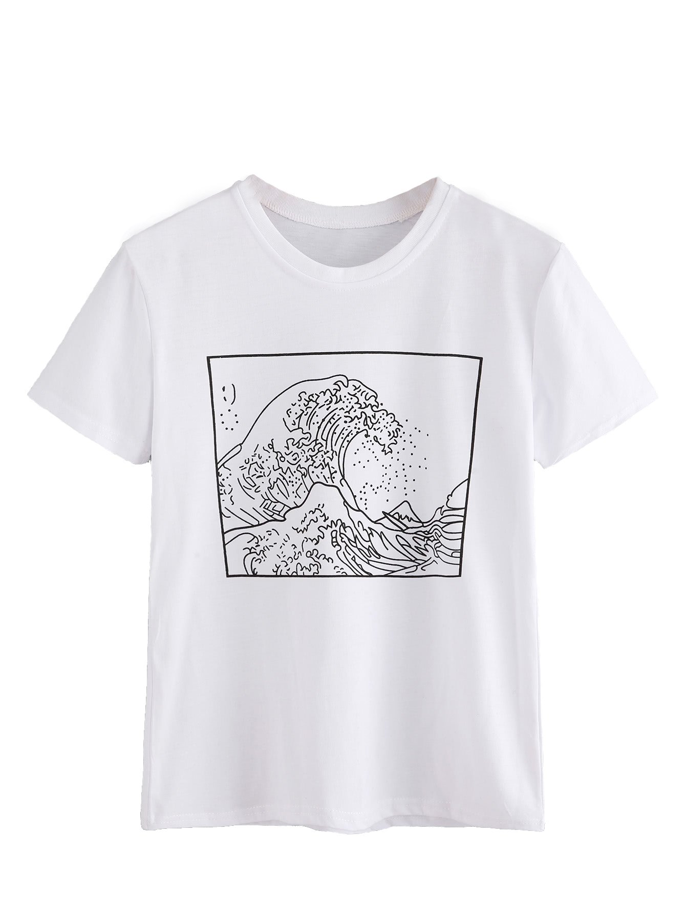 Buy Romwe Women's Short Sleeve Top Casual The Great Wave Off Kanagawa Graphic Print Tee Shirt White Right Here and Right Now just for $13.99 Because before price is changed at anytime without notice or this item will sold out. who is know?