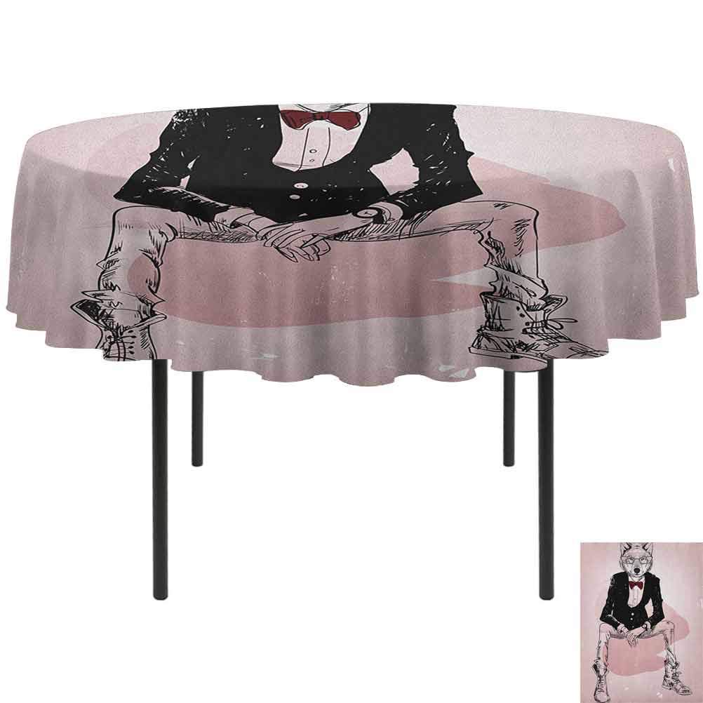 Buy ScottDecor Indie Kids Round Tablecloth Hipster Portrait of Sitting Wild Wolf with Glasses Smart Casual Outfit Baby Pink Black Burgundy Diameter 36"